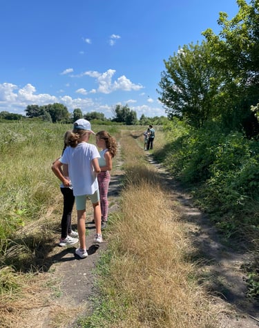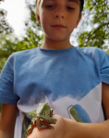 There are two oxbow lakes, where we can canoe. We do not offer canoeing lessons!